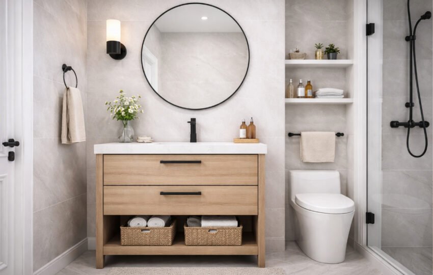 Banyonuzun ölçülerine ve kullanım ihtiyaçlarına uygun, neme dayanıklı malzemelerle şık ve kullanışlı dolaplar tasarlayıp uyguluyoruz.